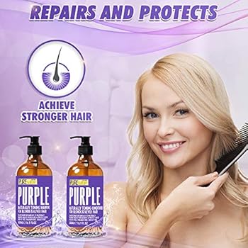 Amazon Com Purple Shampoo And Conditioner Set No Orange Yellow Or Brassy Tones Best Toner Treatment For Brassiness Blonde Grey Bleached Or Silver Hair Sulfate Free Beauty Personal Care